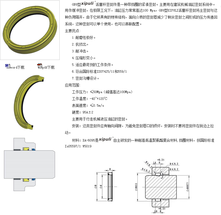 活塞(轴用)密封件GBU(BU)型
