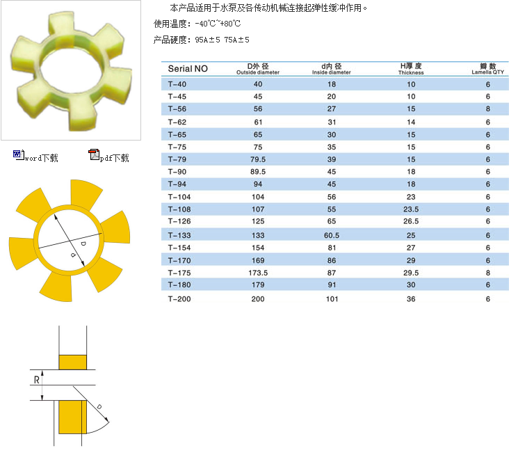 T梅花型联轴器弹性缓冲垫